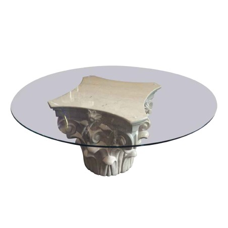 TAVOLINO IN CREMA MARFIL CON PIANO ROTONDO IN VETRO