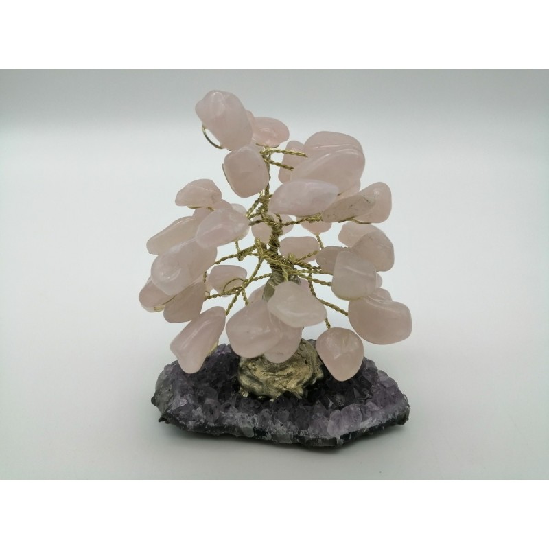 ALBERO DELLA VITA CON BASE DI AMETISTA E CHIPS DI QUARZO ROSA