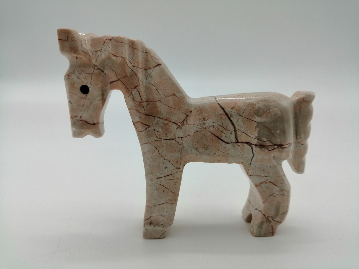 ANIMALE CAVALLO IN MARMO ROSSO PREZIOSO