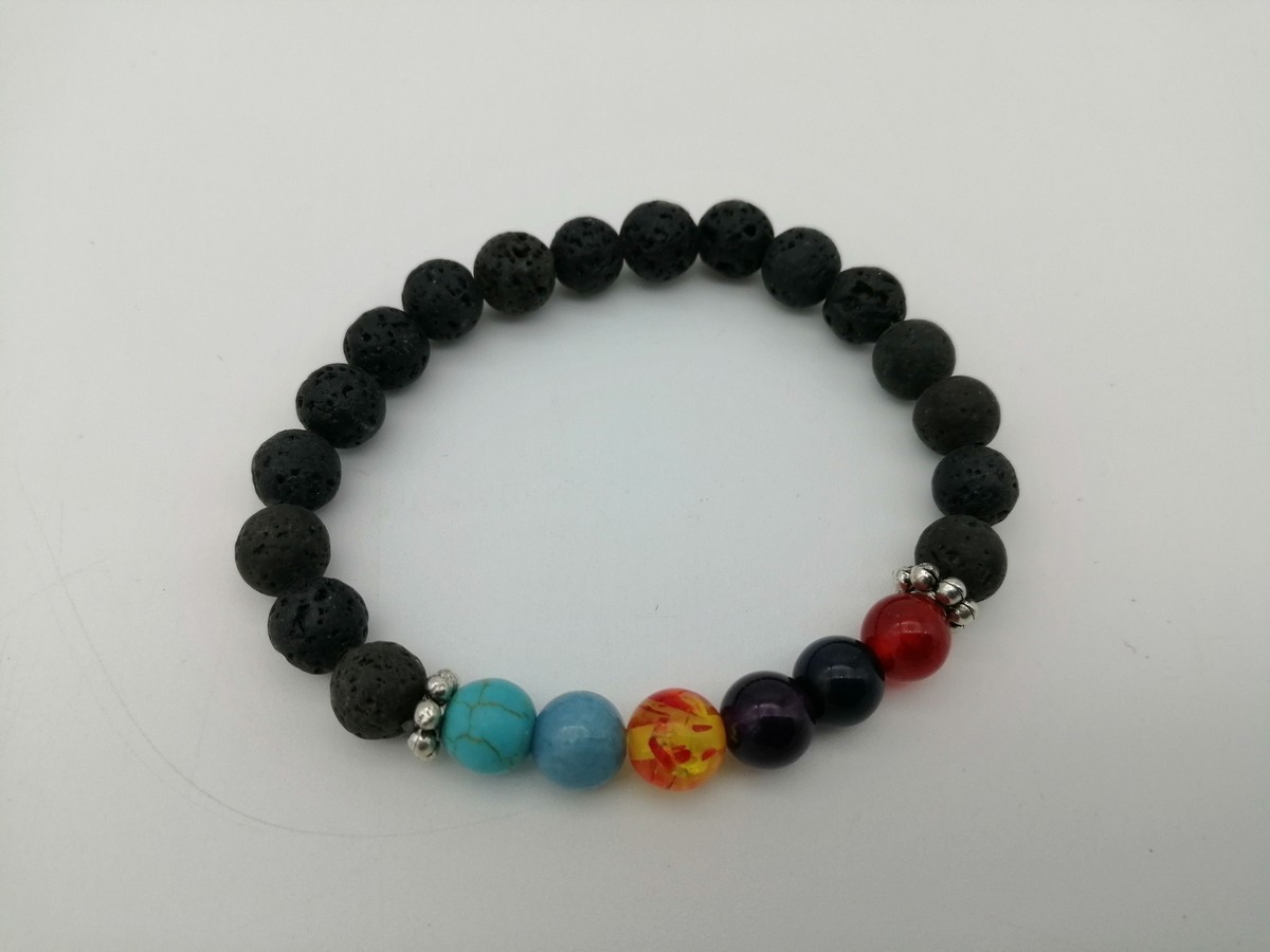 BRACCIALE IN PIETRA LAVICA E CHAKRA