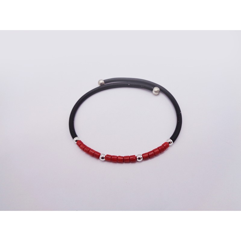 BRACCIALE RIGIDO IN CAUCCIU' E CORALLO ROSSO