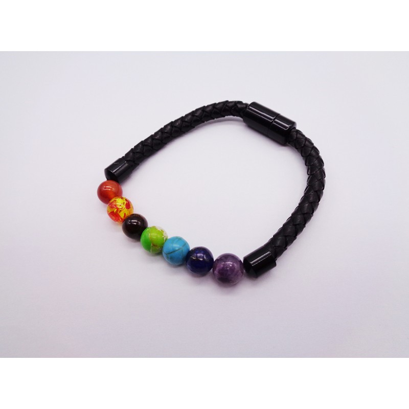 BRACCIALE IN PELLE E PIETRE NATURALI CON CHIUSURA A CALAMITA