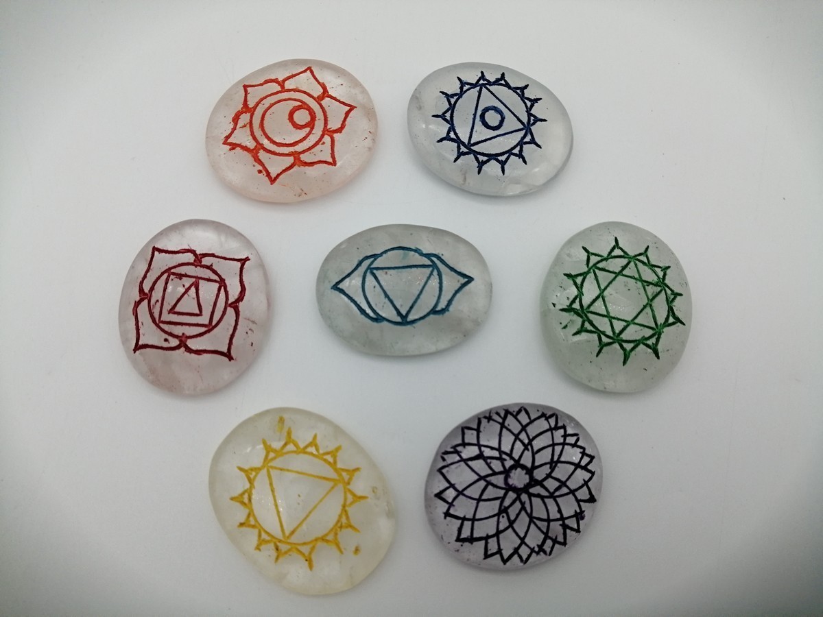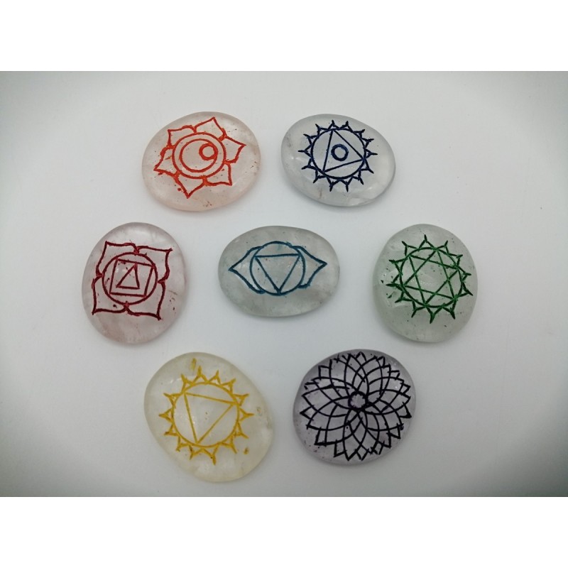 SET CHAKRA OVALI QUARZO BIANCO
