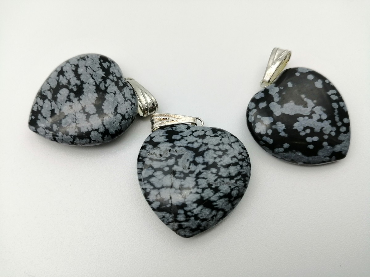 CIONDOLO CUORE GRANDE OSSIDIANA FIOCCO DI NEVE