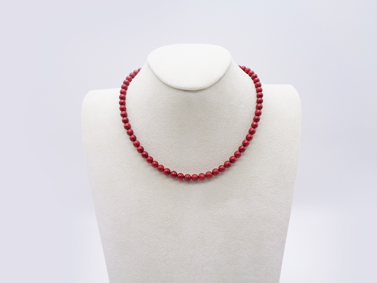 COLLANA DI SFERE IN CORALLO ROSSO CON CHIUSURA DORATA