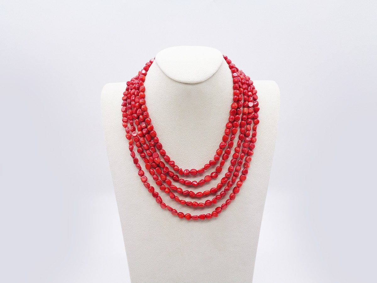 COLLANA CINQUE FILI DI CORALLO ROSSO CON CHIUSURA IN ARGENTO