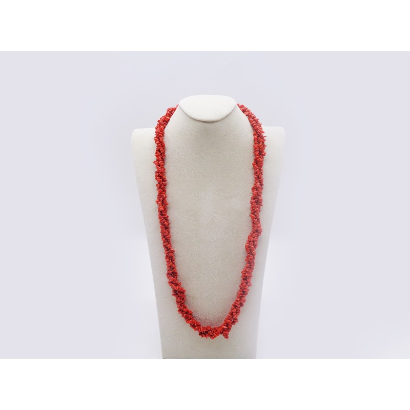 COLLANA FILI DI CHIPS IN CORALLO ROSSO CON CHIUSURA DORATA