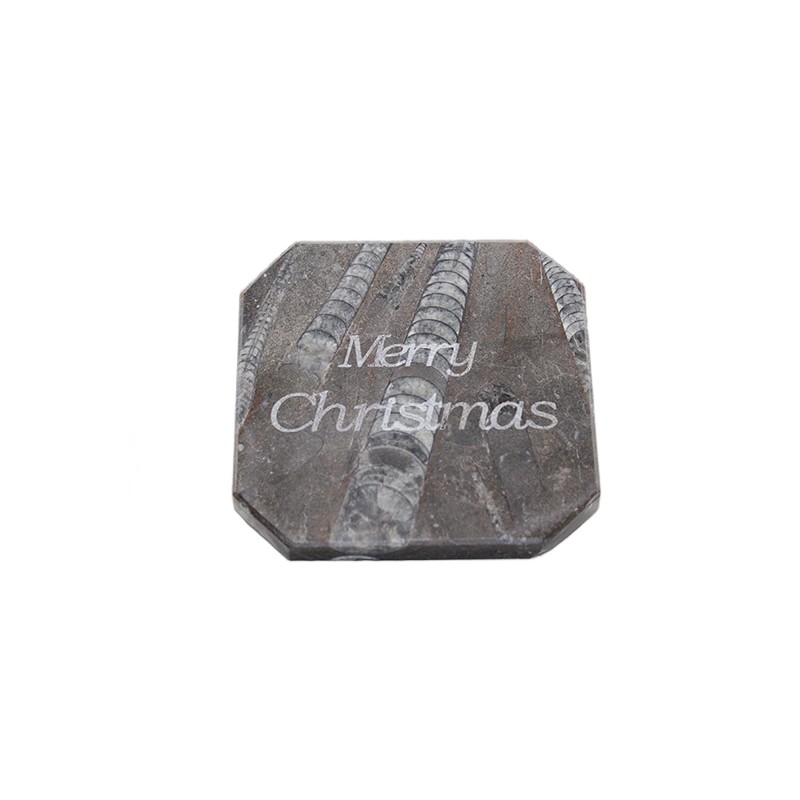 SOTTOBICCHIERE NATALIZIO INCISO IN MARMO NERO FOSSILE