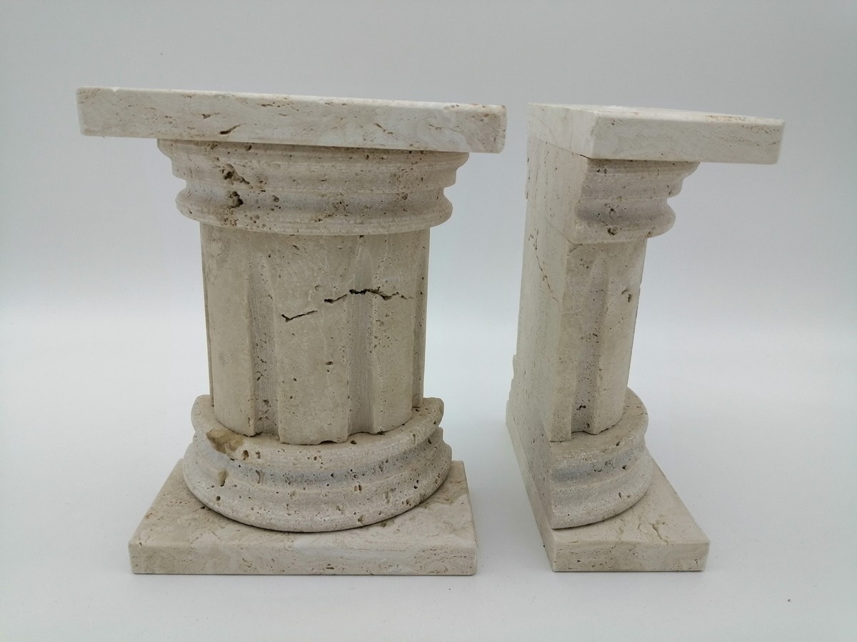 FERMALIBRO SINGOLO A COLONNA ROMANA CON SCALANATURE IN TRAVERTINO