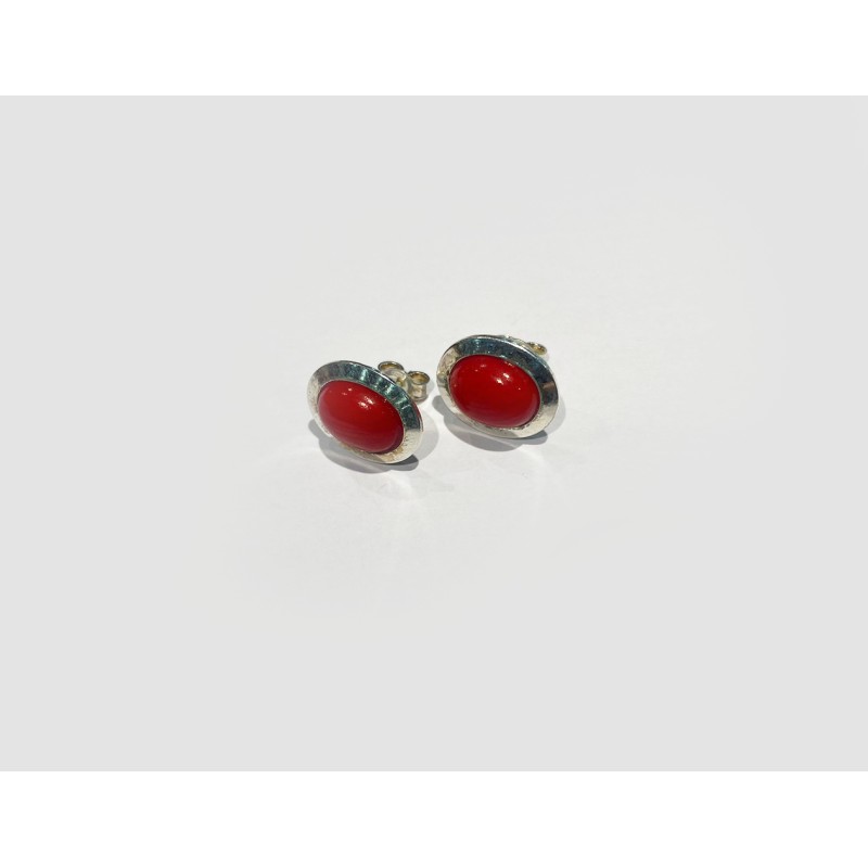 ORECCHINI IN CORALLO ROSSO CON MONTATURA IN ARGENTO