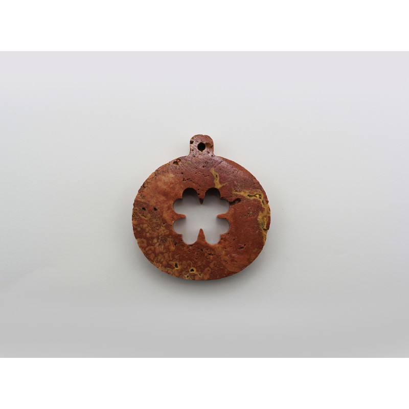 DECORAZIONE NATALIZIA- PALLINA DI NATALE IN TRAVERTINO ROSSO CON QUADRIFOGLIO INCISO