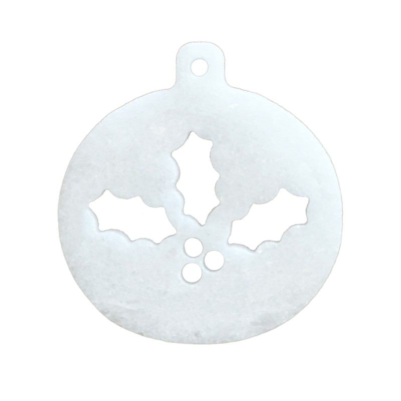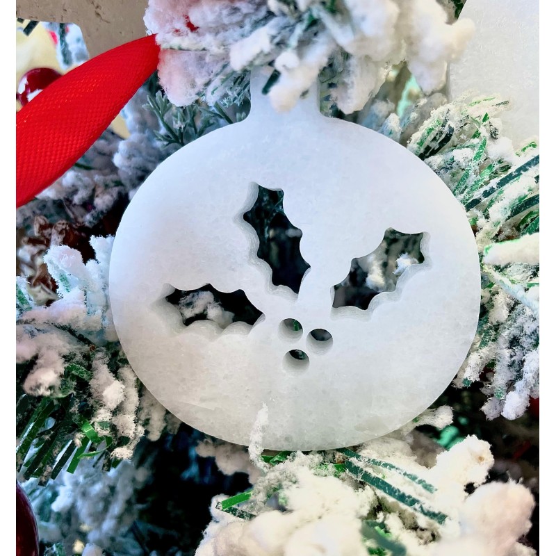 DECORAZIONE NATALIZIA-PALLINA DI NATALE IN BIANCO AMORE CON AGRIFOGLIO INCISO