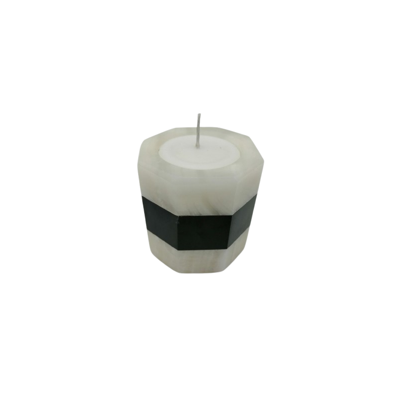 PORTACANDELA OTTAGONALE IN ONICE BIANCO