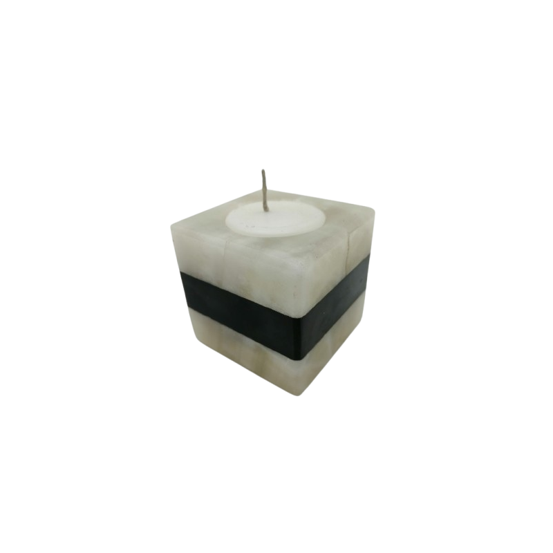 PORTACANDELA QUADRATO IN ONICE BIANCO