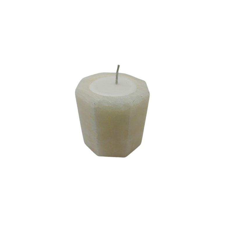 PORTACANDELA OTTAGONALE IN ONICE BIANCO