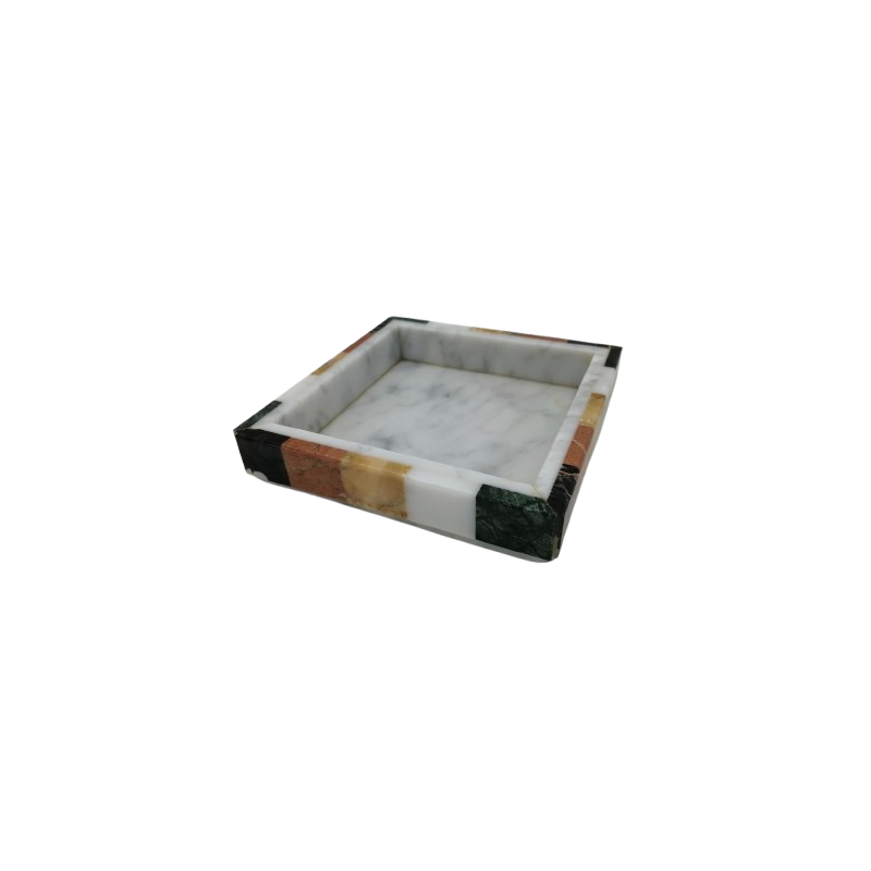 POSACENERE QUADRATO IN MARMO BIANCO E CORNICE MIX COLORI