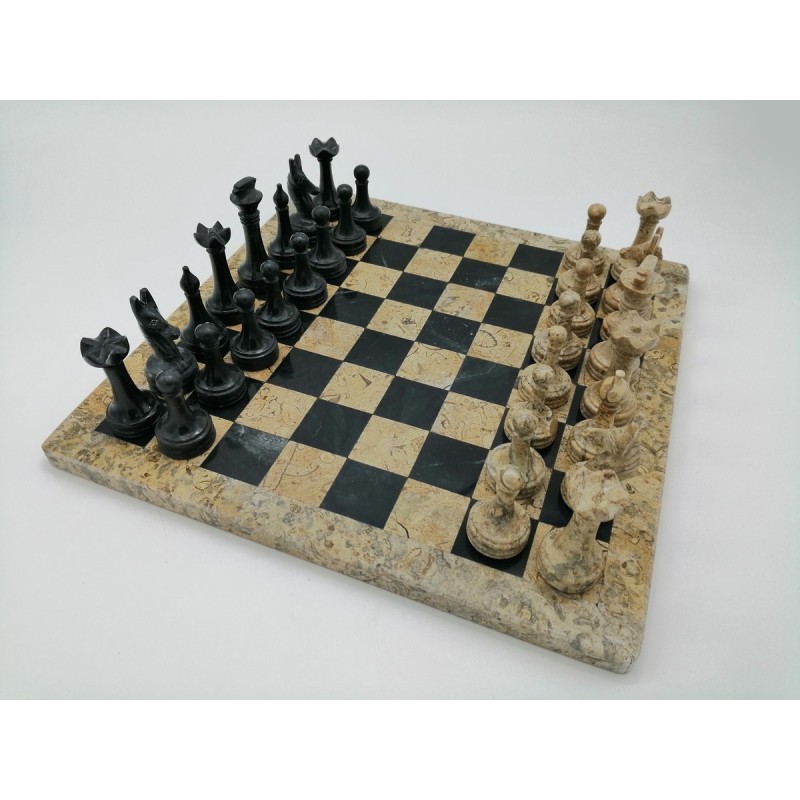 SCACCHIERA IN PIETRA FOSSILE E MARMO