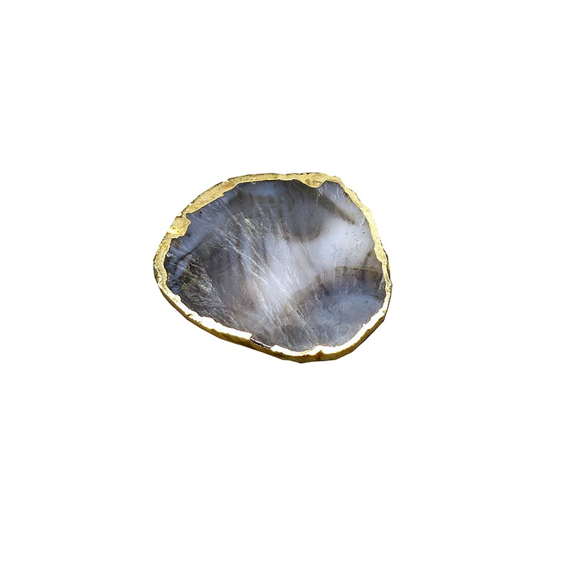 SOTTOBICCHIERE IN AGATA NATURALE CON BORDI COLOR ORO