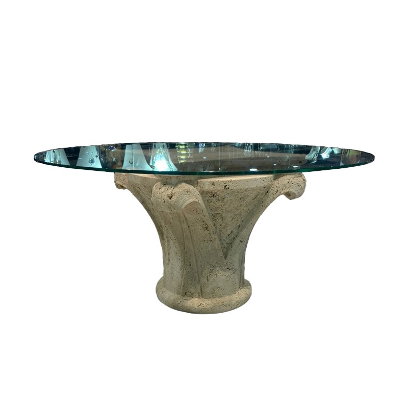 TAVOLINO IN TRAVERTINO CON PIANO IN VETRO